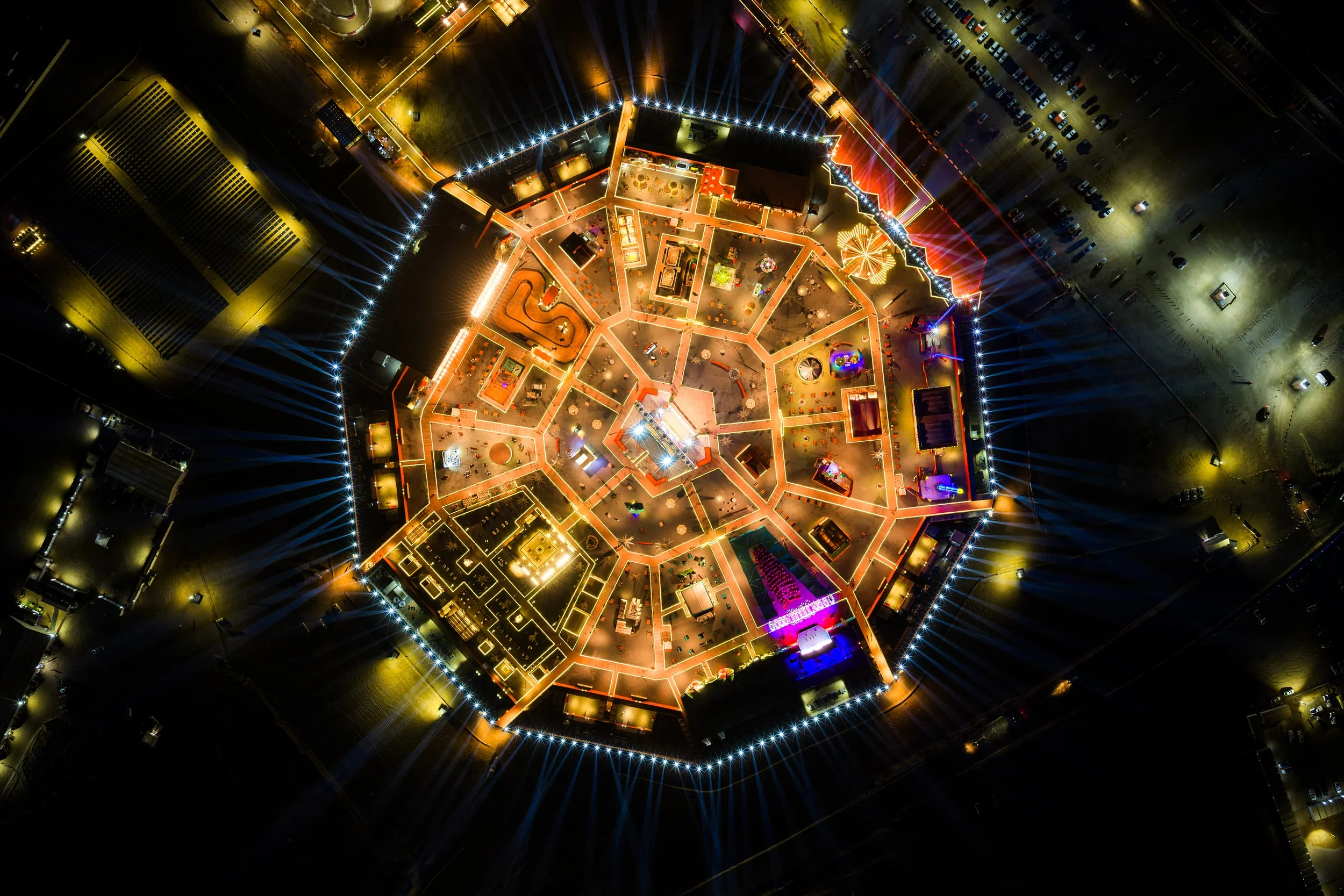 Liwa Village 2025 operates as a temporary urban construct embedded within landscape — a geometric framework that transforms seasonal gathering into spatial narrative.